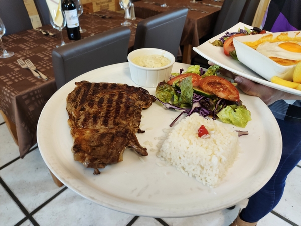 Accompagnements : frites, riz, duchesses, röstis Sauces : poivre, maroilles, béarnaise, champignons, échalotes