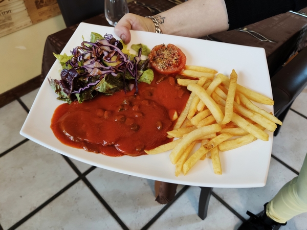 Escalope de volaille sauce maroilles frites | 9,00€ Welsh complet : Pain, jambon, cheddar, œuf, frites | 9,50€ Snouk burger : Pain burger, sauce burger, oignons, tomate, cheddar, steak haché, frites | 9,00€ Potjevleesh/Frites | 9,50€ Tartare de bœuf préparé / frites | 9,50€ Nuggets (5 pièces)/ frites | 5,00€
